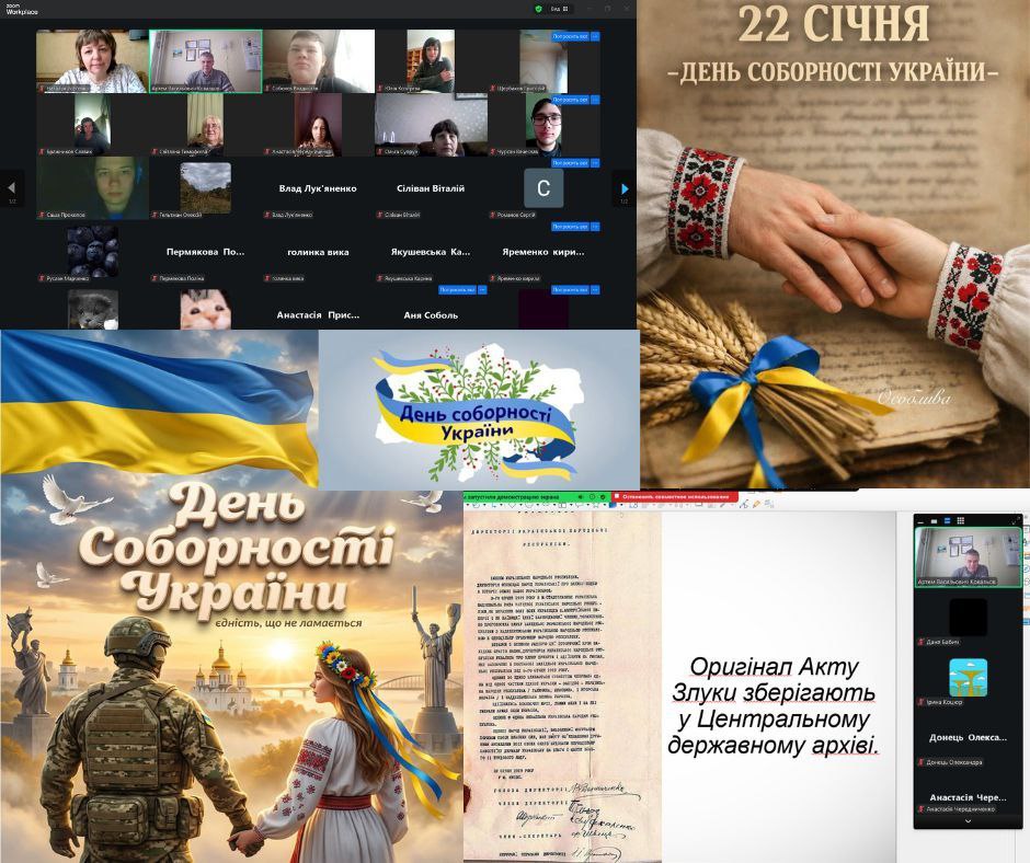 Для здобувачів освіти була проведена тематична зустріч «Україна: шлях до єднання». Під час заходу учні разом із викладачами історії згадали тернистий шлях становлення української соборності, обговорили важливість згуртованості суспільства в сучасних умовах та вшанували пам’ять тих, хто виборював і продовжує захищати територіальну цілісність нашої держави.