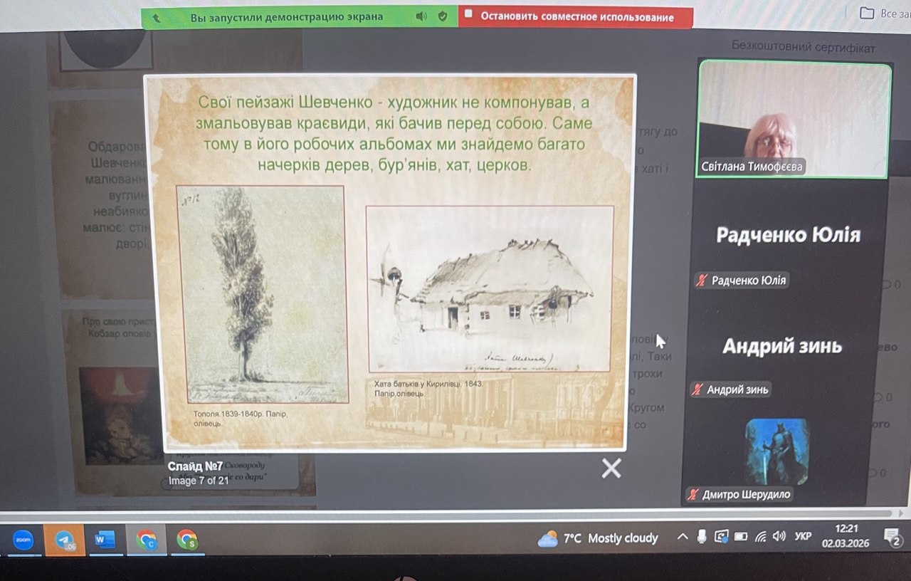 У рамках Тижня української мови та літератури студенти групи ШЛП-1 підготували цікавий усний журнал «Тарас Шевченко — художник». Під час заходу було розкрито багатогранність таланту Кобзаря, акцентуючи увагу на його майстерності як видатного живописця та графіка.
