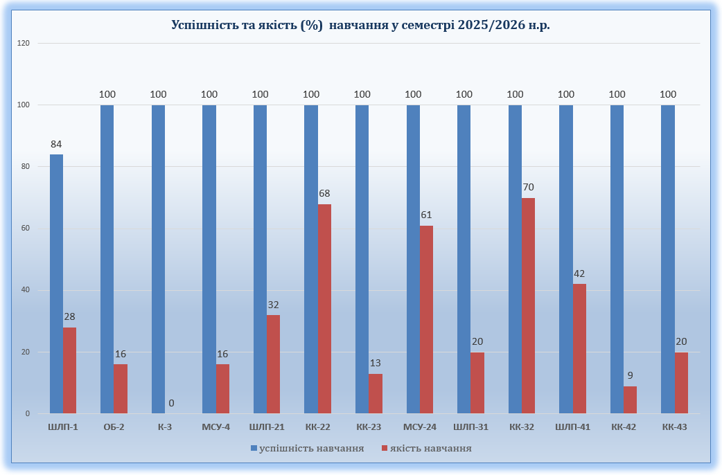 Моніторинг рівня навчальних досягнень студентів у І семестрі 2025/2026 н.р.